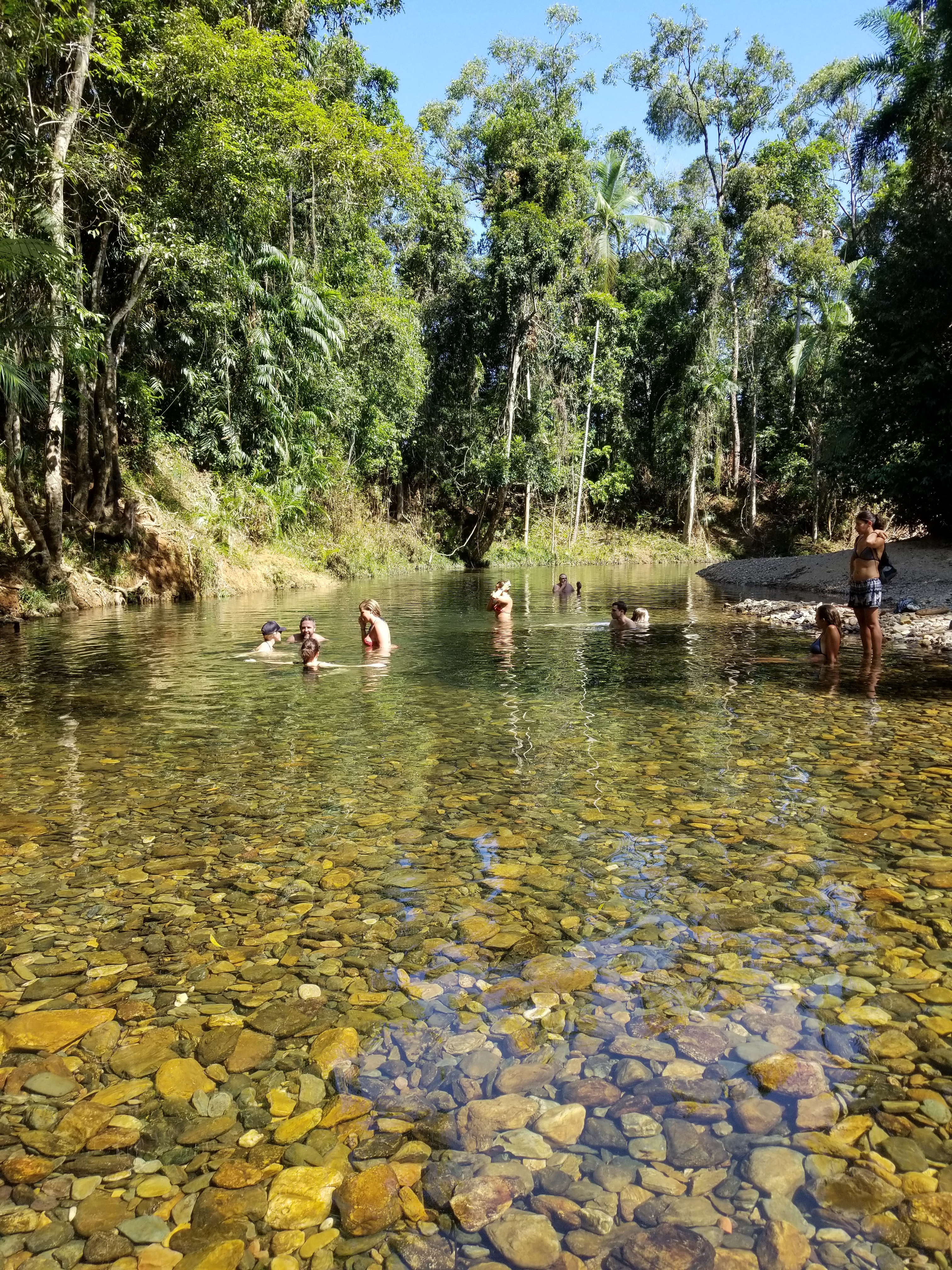 We had lunch while at Cape Tribulation where we informed to keep a look out for a salt water crocodile who has been in the area as well as mantra ray and sea turtles. We were also told not to go into the water due to stingers which seemed to be quite prevelent in the area as per the signs.