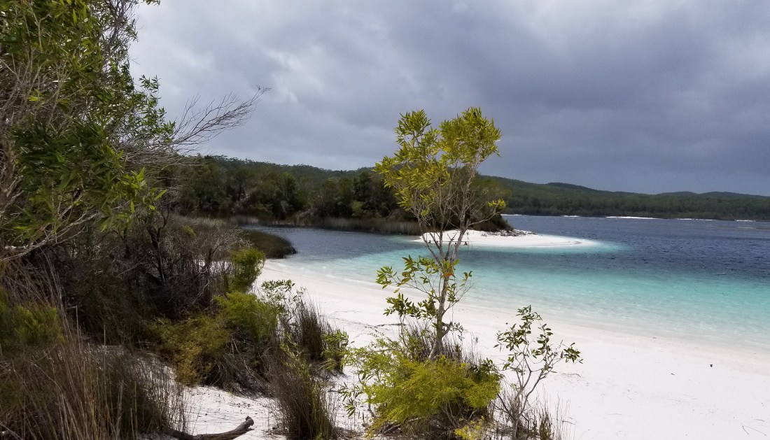 After arriving on the island, we headed to Lake Mackenzie, one of the largest and accessible perch lakes. A perch lake is a lake that has is no feeds from nor feeds any other water sources. The only source of water is from rain. Over hundreds of years, the debris from the surrounding trees fell into a hollow created from the blowing sands which made a lining to trap the water. The sands around the lake are baby powder soft and absolutely white as it 100% silica/white quartz. Due to the warm weather, the water in the shallows was bathtub warm.