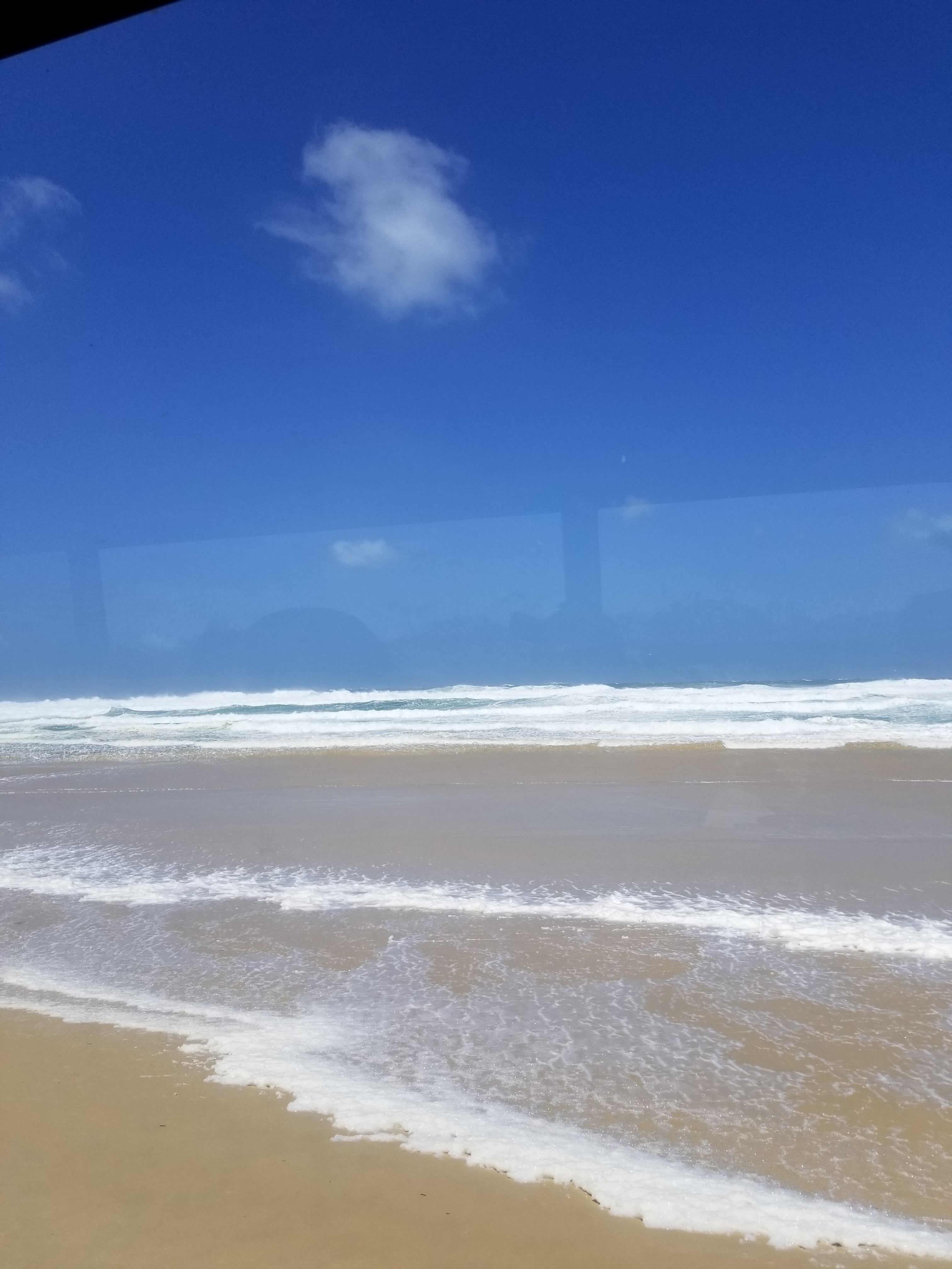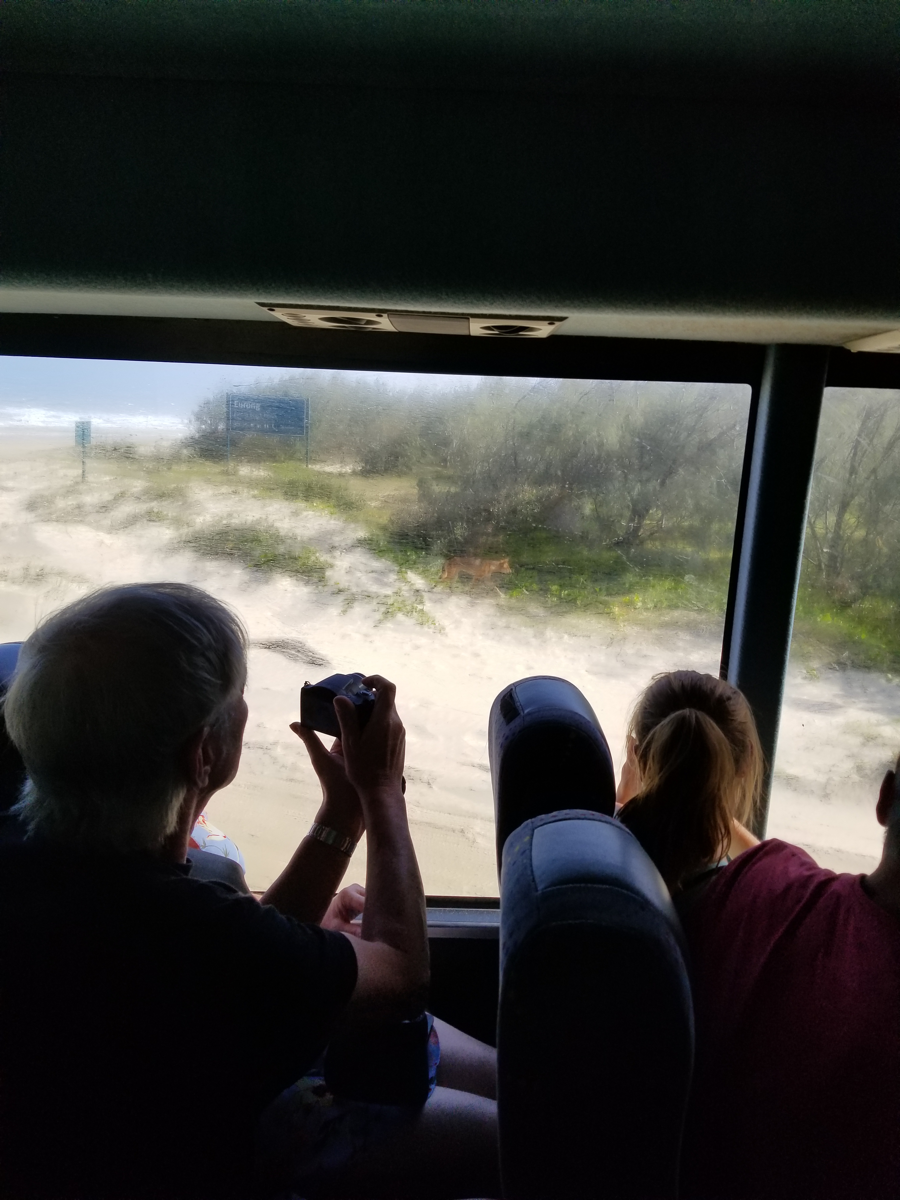 We saw a dingo in the dunes but we could not stop for a photo as the water was so coming so high onto the beach and it made the sand soft which could cause the bus to get stuck. We were sitting on the opposite of the bus so I wasn’t able to get a photo.