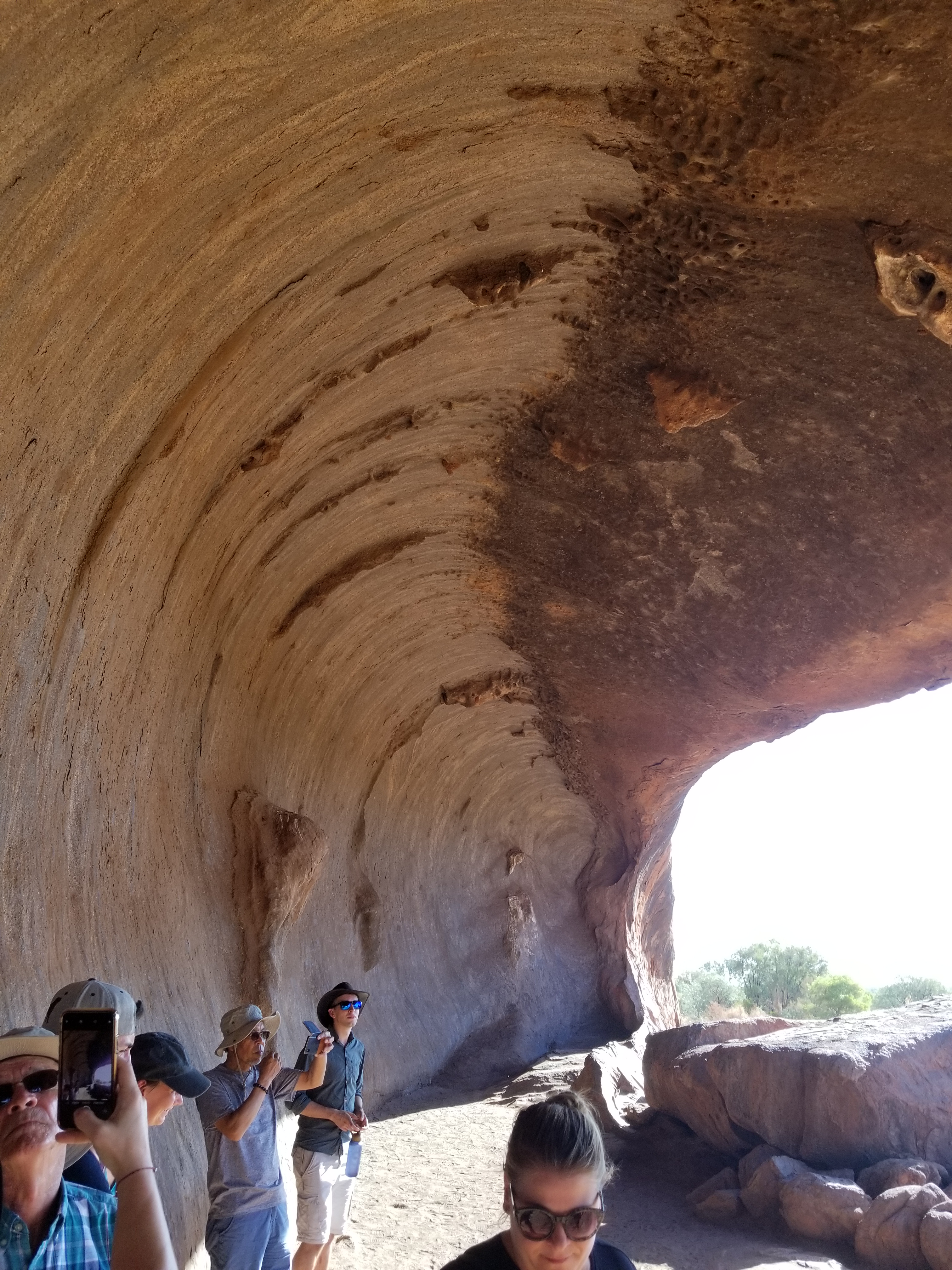 After our stop at the Cultural Centre is was onto Uluru and our first walk, the Multitjulu Waterhole. Because the area had 38mm of rain last month, there was actually water in the waterhole although it was evaporating about 1/2 inch every day.